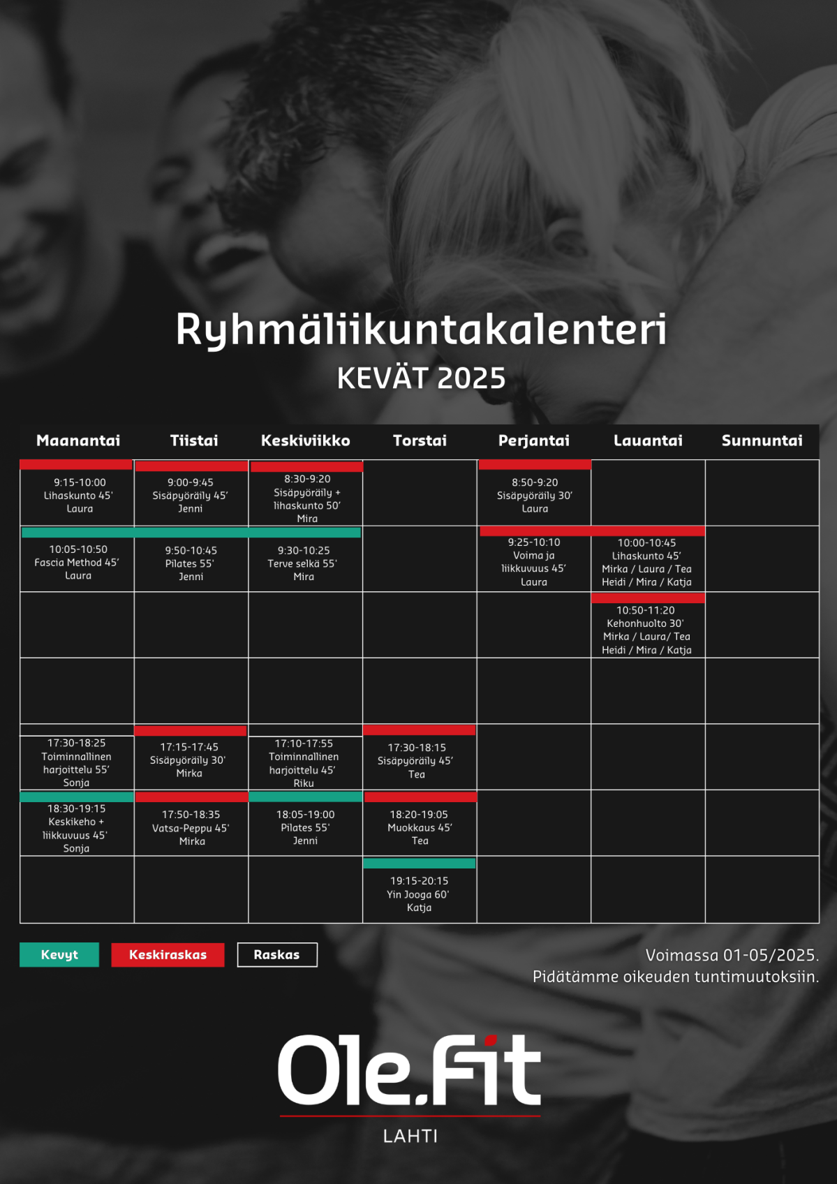 Booking classes on Avoinna24 service requires a valid group fitness membership. Trial visits and individual bookings for group fitness classes are made through customer service.