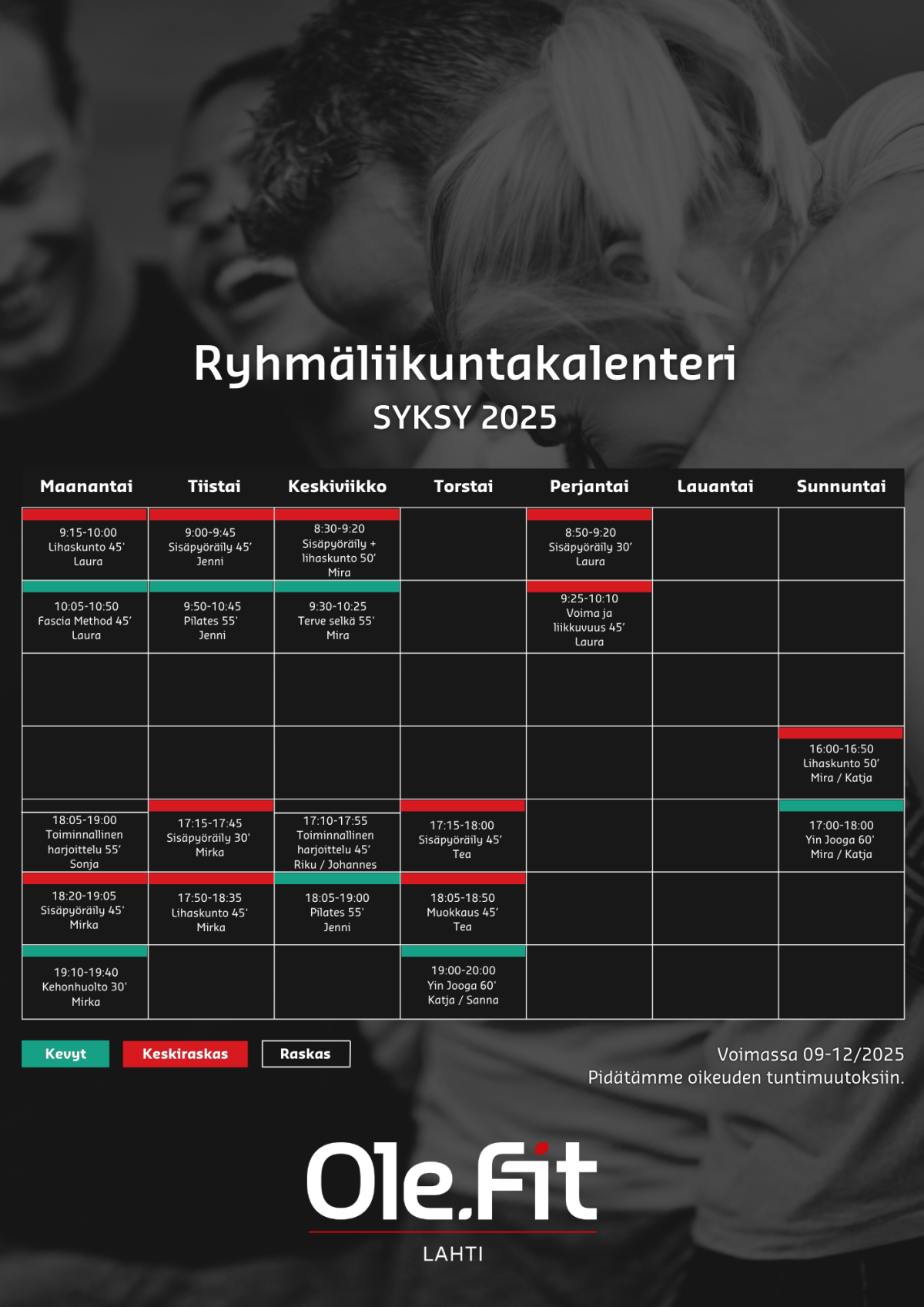 HUOM! Tuntimuutokset täältä!